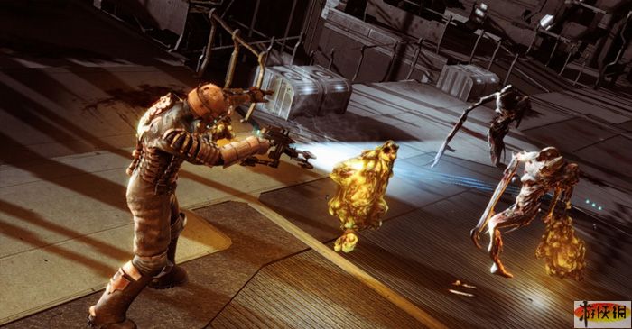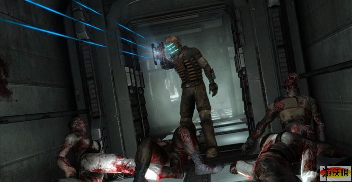 《死亡空間(Dead Space)》游戲在設(shè)計時主要考量恐怖“三元素”,包括未知生物突然趴在你身上、在未知的環(huán)境中似乎前方應(yīng)該有東西卻又看不到東西,再加上完全找不到幫助的孤寂感;游戲主打的不是厲害的戰(zhàn)士或是英雄,而是一名普通的工程師,游戲的武器、道具等介面有點(diǎn)類似電影“關(guān)鍵報告”中,可即時呈現(xiàn)在主角面前的淺藍(lán)色螢?zāi)唬捎谟螒蚴浅掷m(xù)即時進(jìn)行的,因此即使玩家叫出這些介面時,仍隨時有可能被怪物攻擊。