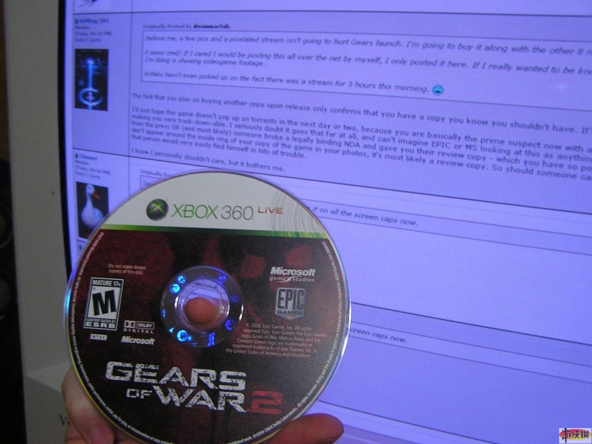 [游俠新聞] 即將于下個(gè)月上市發(fā)售的Xbox 360大作《戰(zhàn)爭(zhēng)機(jī)器2(Gears Of War 2)》在今天傳來(lái)遭偷跑消息。下面的為一個(gè)國(guó)外玩家剛剛拿到偷跑的《戰(zhàn)爭(zhēng)機(jī)器2(Gears Of War 2)》游戲光盤,該玩家在安裝進(jìn)入到游戲之后在網(wǎng)絡(luò)上上傳了許多《戰(zhàn)爭(zhēng)機(jī)器2(Gears Of War 2)》游戲屏攝圖片。