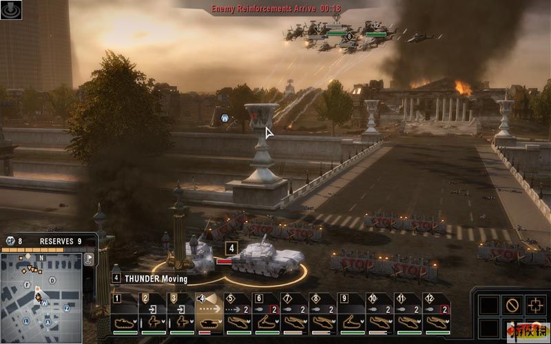 由于《末日之戰(zhàn)(End War)》中并沒有傳統(tǒng)RTS游戲中采集資源、建造兵營、重工來提供作戰(zhàn)單位的設(shè)計(jì),所以玩家可以全身心的投入到如何使用合理的戰(zhàn)術(shù)去摧毀敵軍之中。