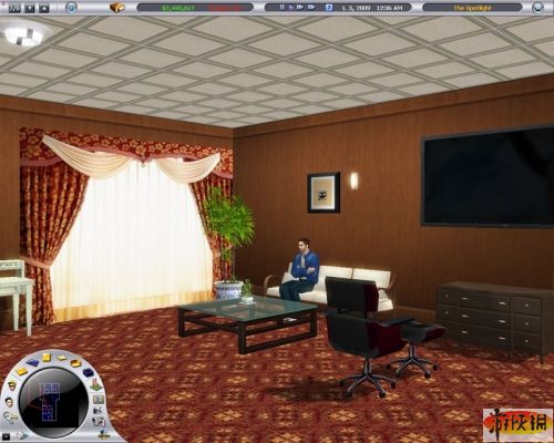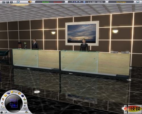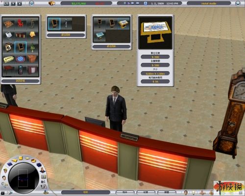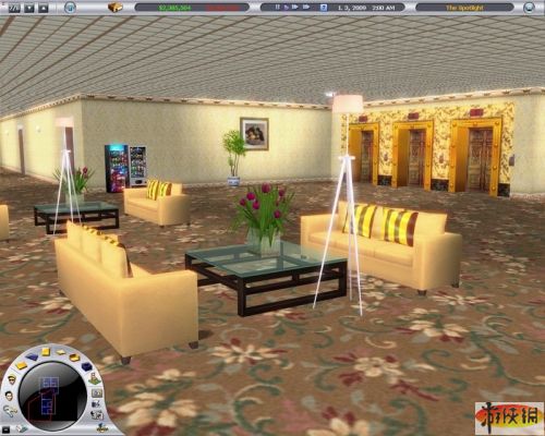 大廳四周都佈置好后,記得要加裝一些設(shè)施,像是電話、垃圾桶、販賣(mài)機(jī)、資訊架……等,接待臺(tái)和收銀臺(tái)也可以換成比較好的等級(jí),游戲系統(tǒng)也很有趣,它會(huì)跳出視窗,提醒玩家大廳裡頭一定要設(shè)置這兩項(xiàng)物件,因?yàn)橐菦](méi)有收銀臺(tái),顧客會(huì)住完就拍拍屁股走人,到時(shí)玩家就真的是在玩“慈濟(jì) Online”了。