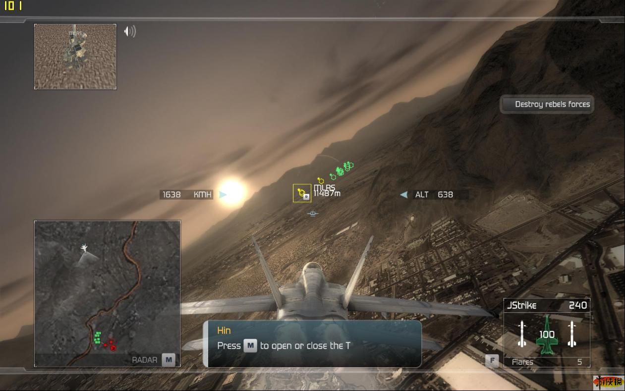 該關(guān)卡需要攻擊地面火箭炮和防空車,然后攻擊直升機(jī)和地面的RPG和坦克,最后與3批供6架Su27空戰(zhàn)