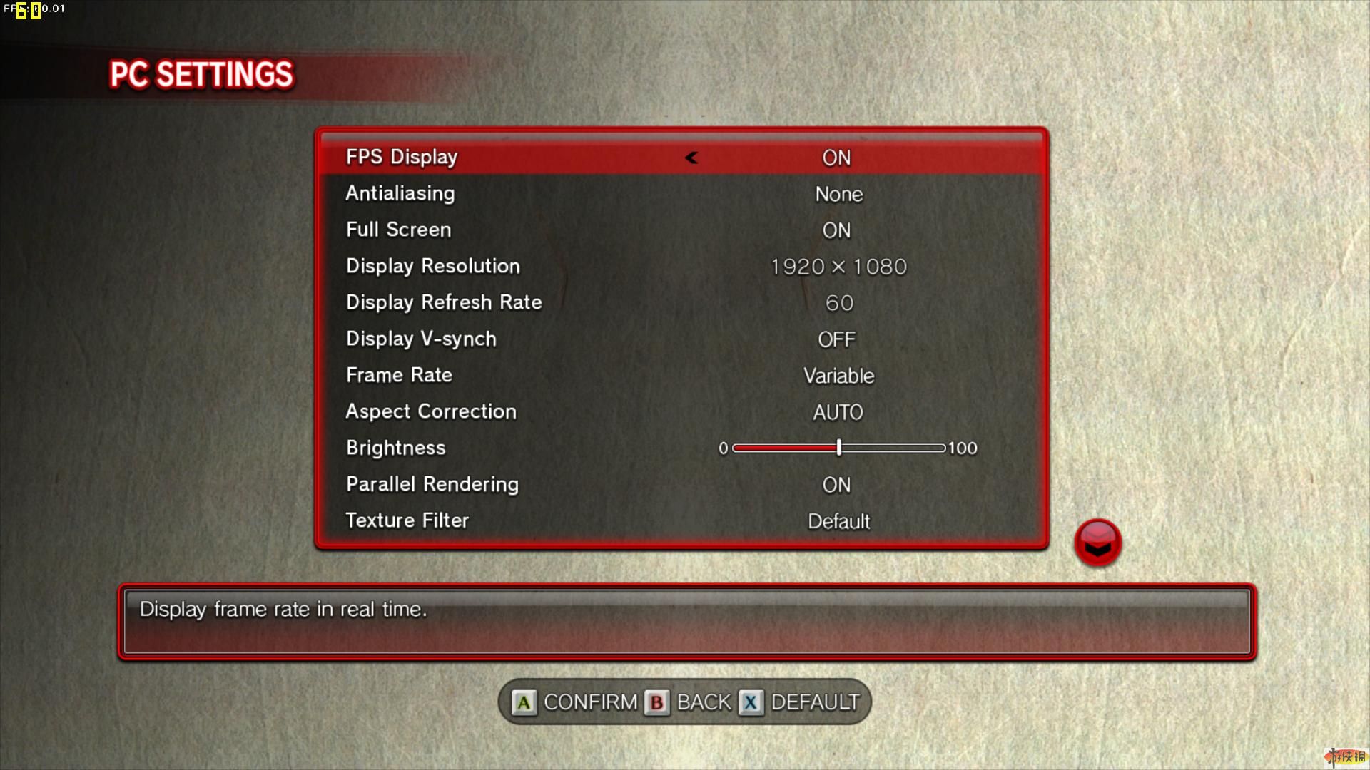設(shè)定完畢后,F(xiàn)PS保持60不變,難道沒作用?可能是游戲程序鎖定了菜單畫面的幀數(shù)。接著打開游戲自帶的Benchmark性能測試。馬上我就被嚇到了,測試畫面如同瘋狂過山車,以350-480的幀數(shù)狂飆!有圖為證!