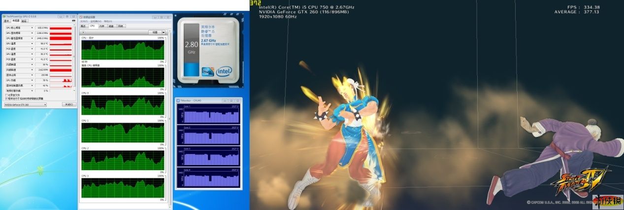 當(dāng)時只覺眼花繚亂,來不及看監(jiān)測畫面。現(xiàn)在通過當(dāng)時截屏,我們可以發(fā)現(xiàn)酷睿i5已經(jīng)四核全開,頻率小超的2.80GHz。瘋狂的幀率讓大俠連連出手??!顯卡顯存占用155MB,GPU負(fù)荷78%。