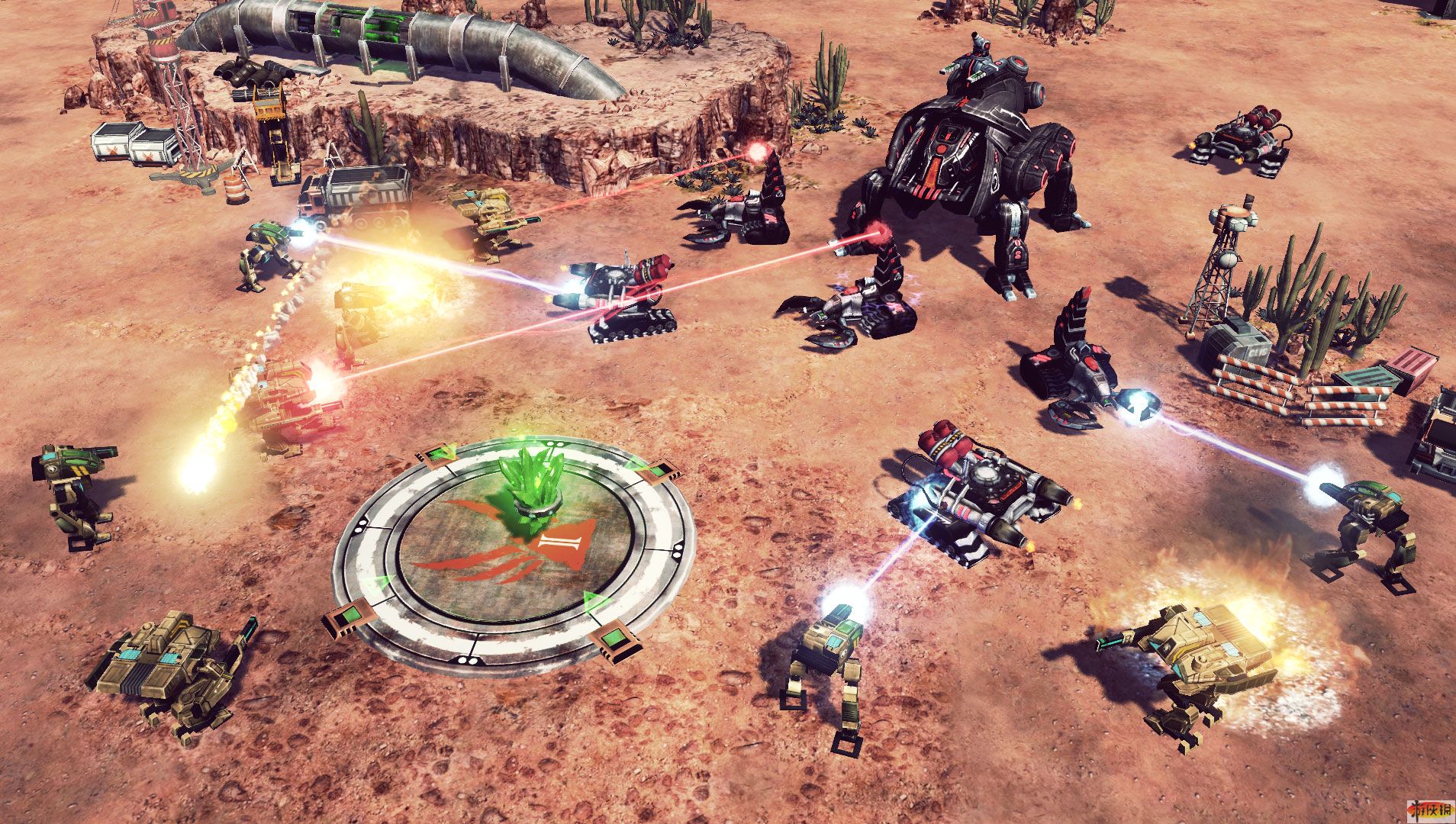 【大圓盤上那個帶著節(jié)育環(huán)的青蔥就是泰伯利亞礦了。這圖最有趣的地方在于,打擊者機甲長大了】