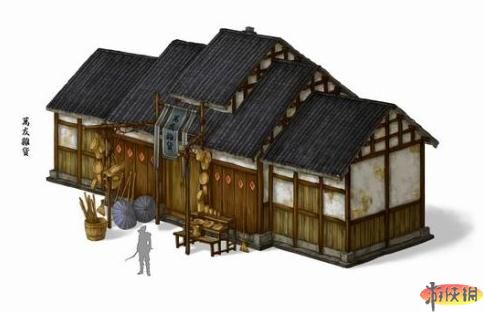 游戲中的人文地理均是有據(jù)可查的,力求將一個原汁原味的古風世界展現(xiàn)在大家的面前。這是萬友雜貨鋪的設計圖,從風格上看,此建筑設計為木質房屋主體薄片灰瓦的結構,墻體的紋理物品的修飾細節(jié)刻畫的十分細致,這在3D國產游戲中,細節(jié)表現(xiàn)并不多見。